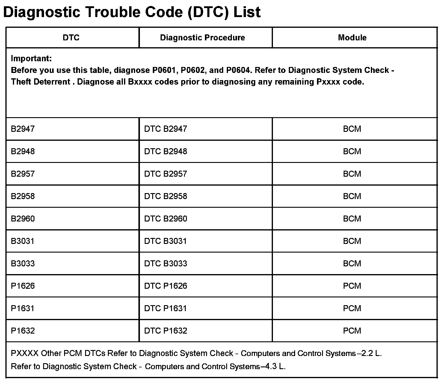 DTCs B2947 - PXXXX: