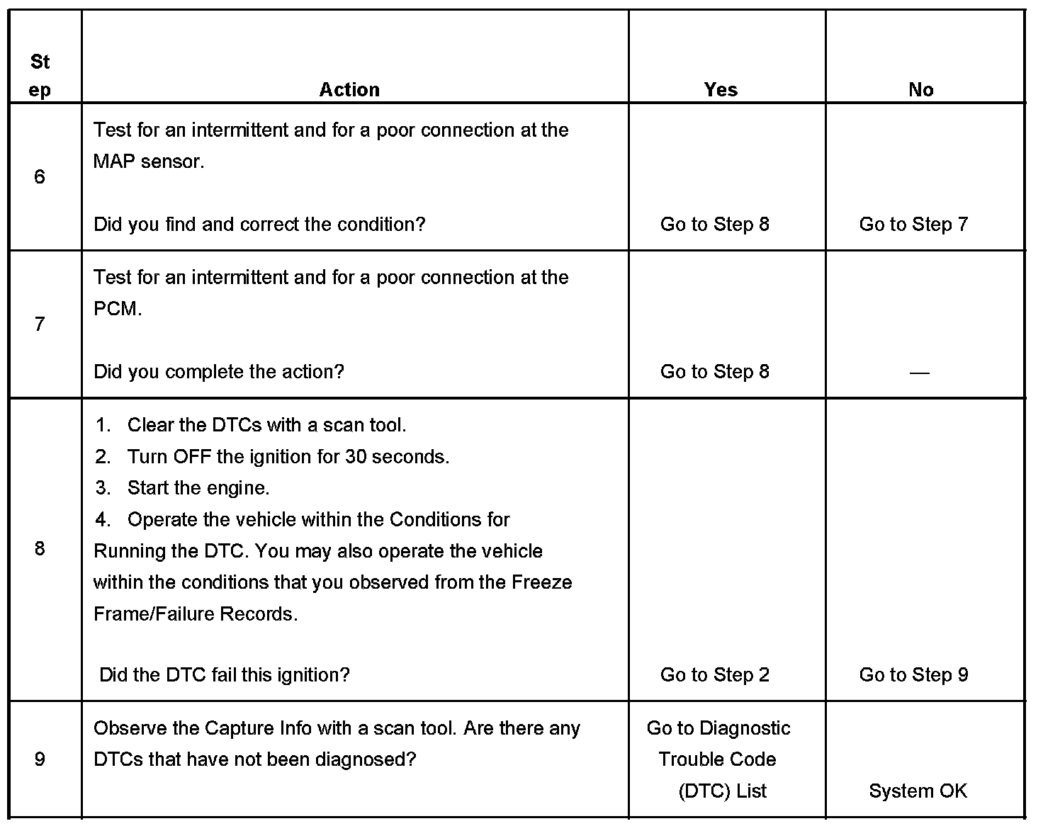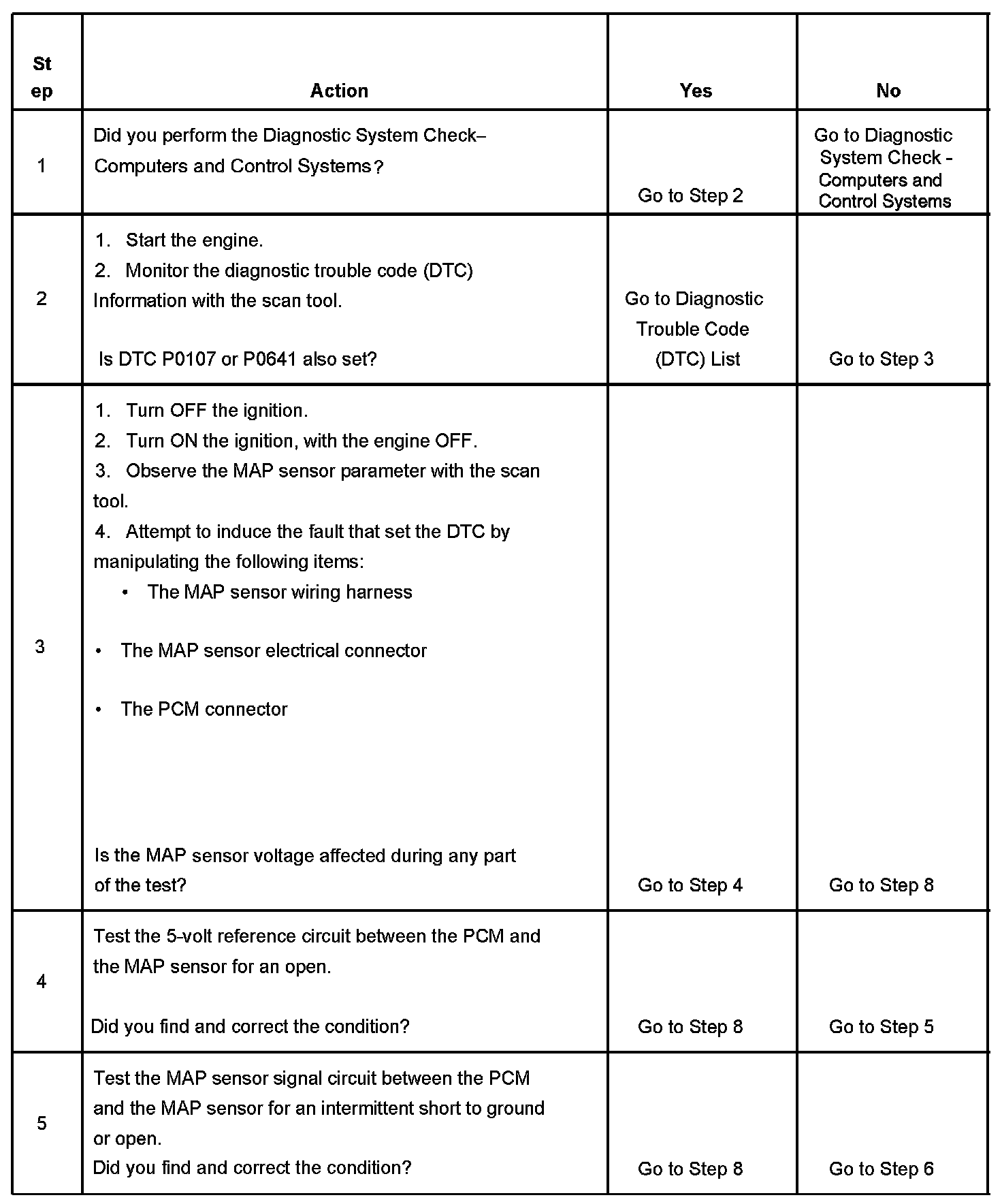 The PCM detects that the MAP sensor voltage is intermittently less than 0.10 volt.