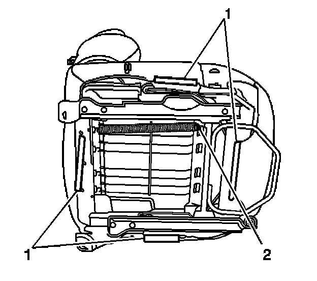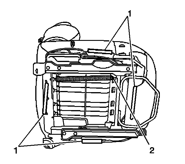 10. Install the spring (2) to the seat adjuster rail.