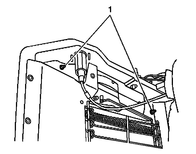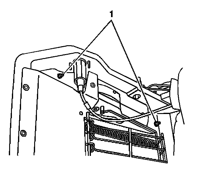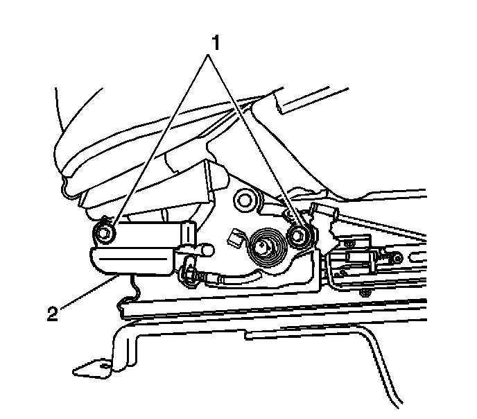 6. Remove the 2 nuts (1) securing the seat adjuster rail to the frame.