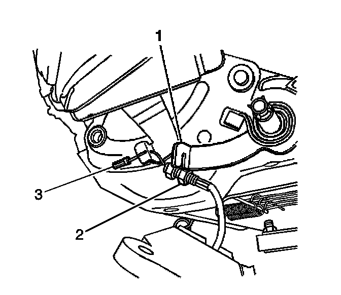 12. Remove the cable (3) from the bracket (1) by loosening cable nut (2).