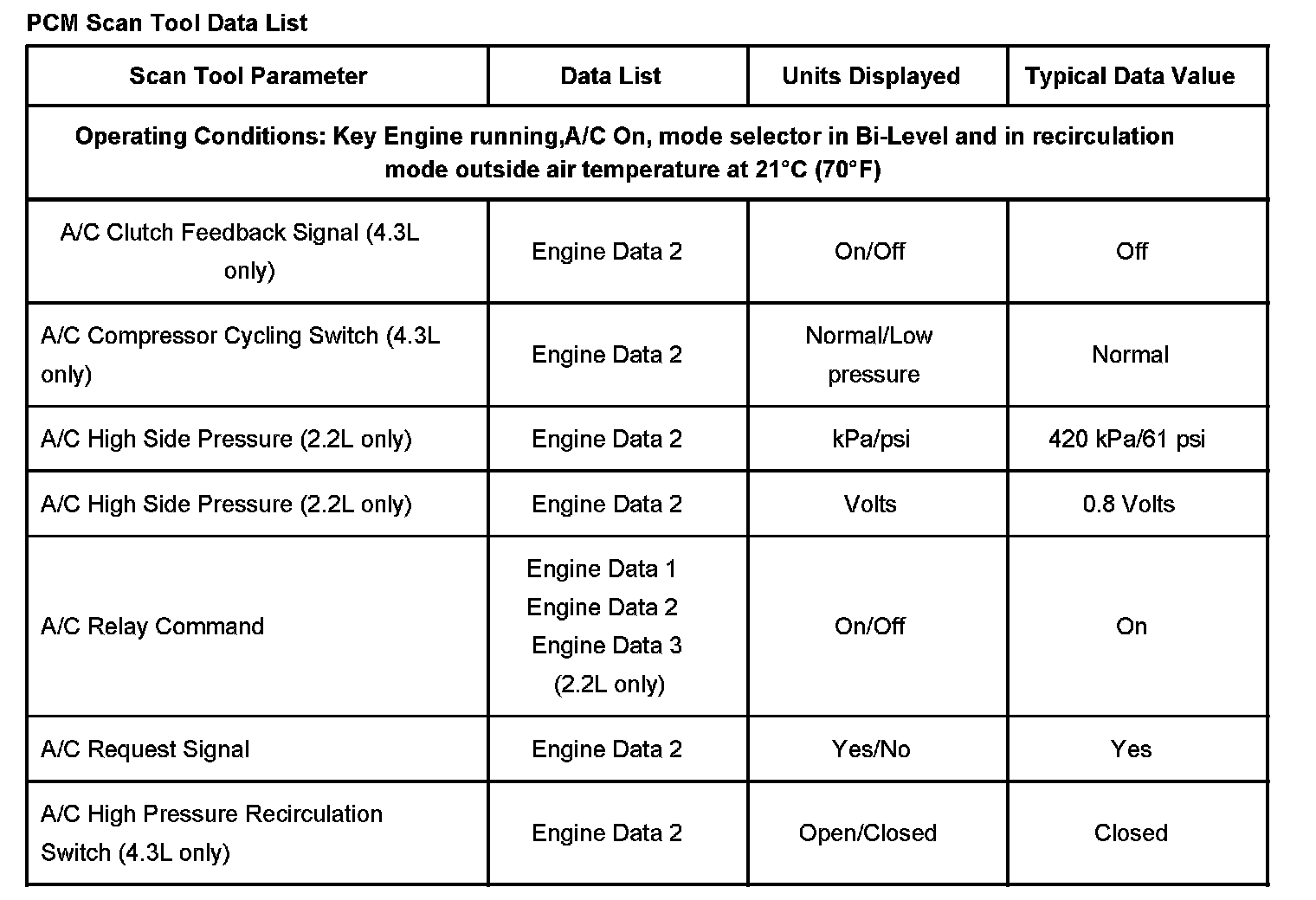 PCM Scan Tool Data List: