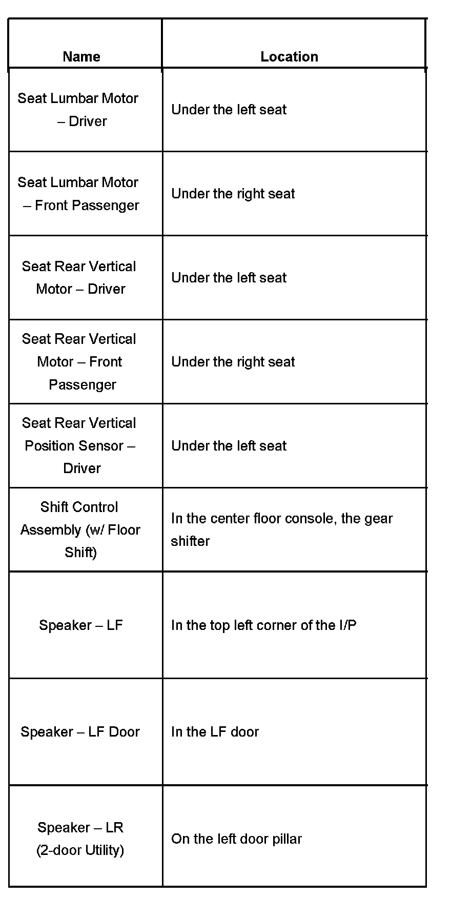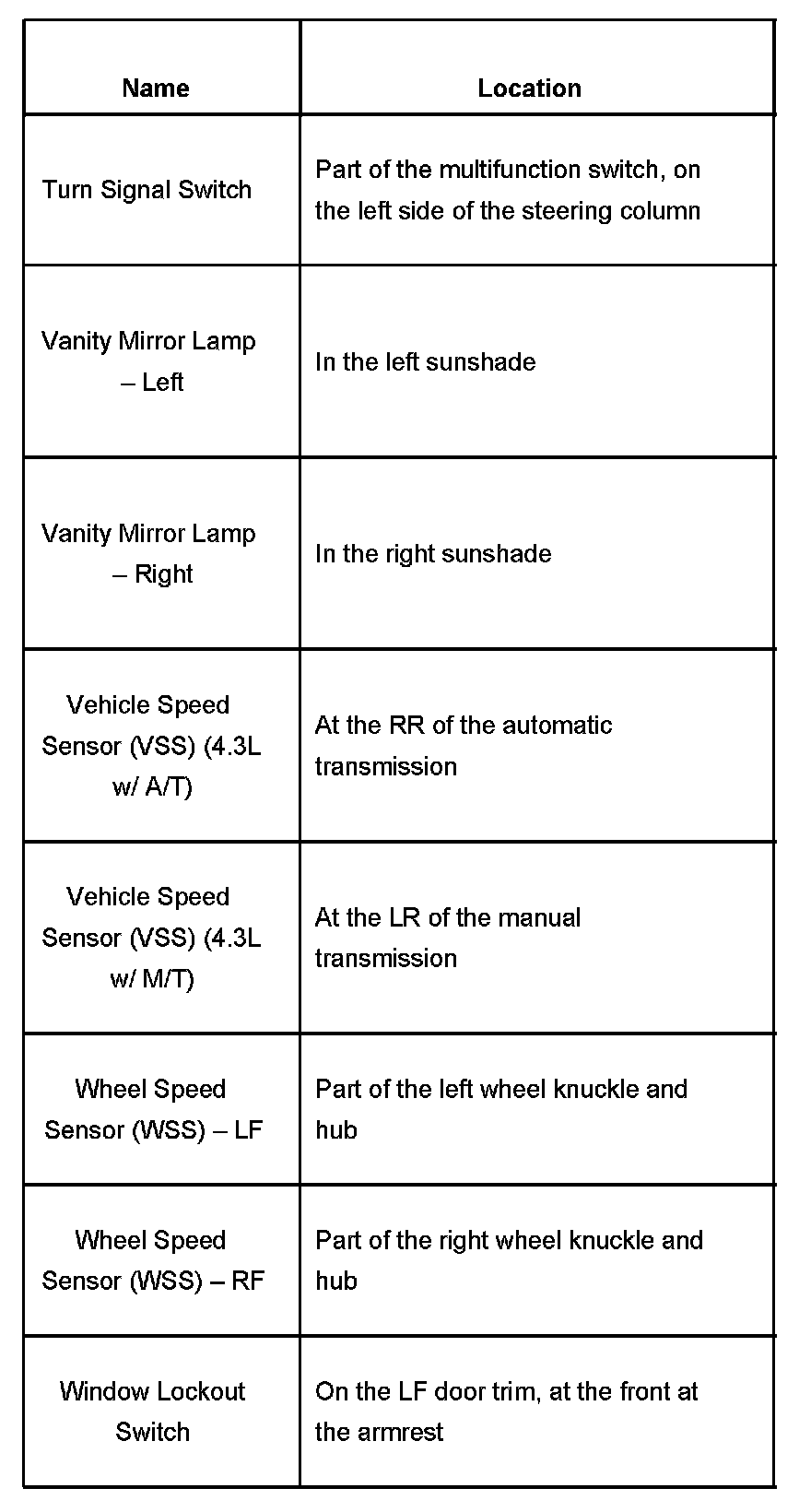Component Locations