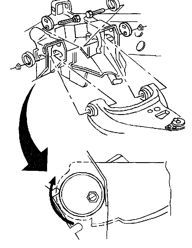 1. Use the cams on the upper control arm frame attaching bolts to adjust the caster and the camber.