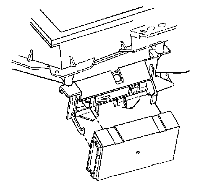 1. Install the body control module to the bracket at an angle under the wide hook retainer, with the label facing away from the bracket.