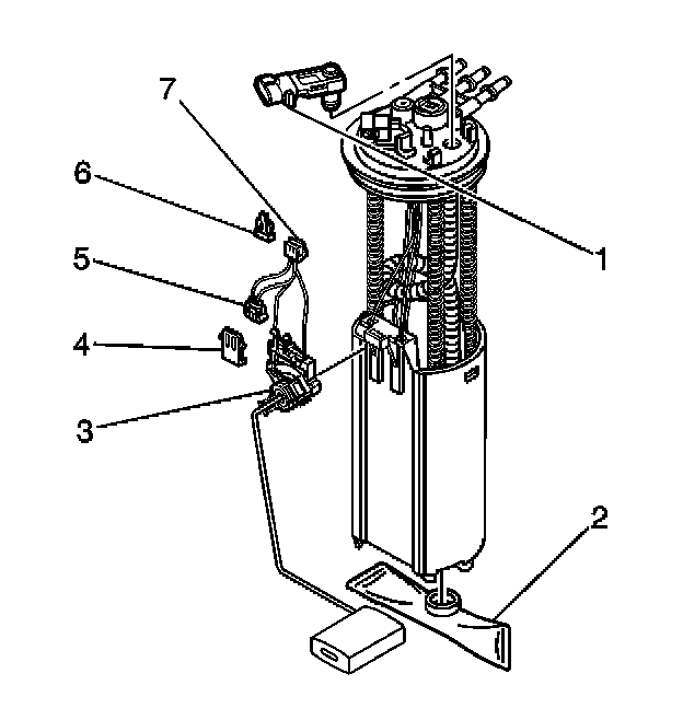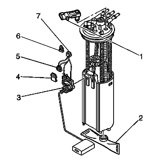 8. Disconnect the fuel level sensor electrical connector (7) from under the fuel sender cover.