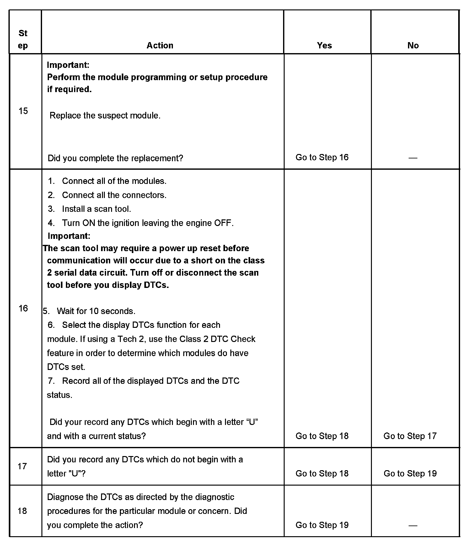 2. A partial loss of communication in the class 2 serial data circuit uses a different procedure than a total loss of communication of the class 2 serial data circuit.