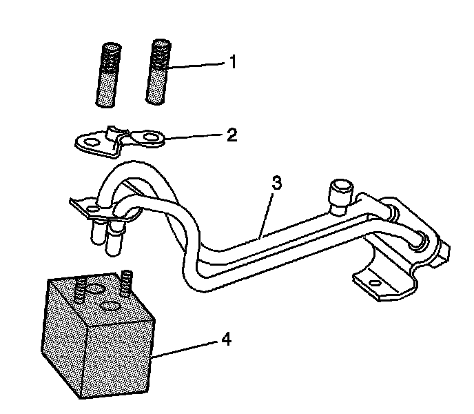 12. Install the J 44466-11 (4) , clamp (2) and J 44466-13 (1) to the fuel pipe and tighten.