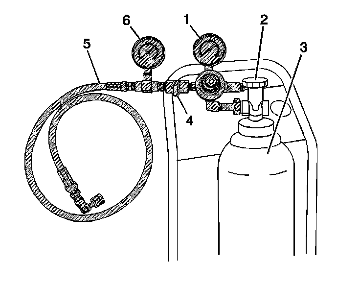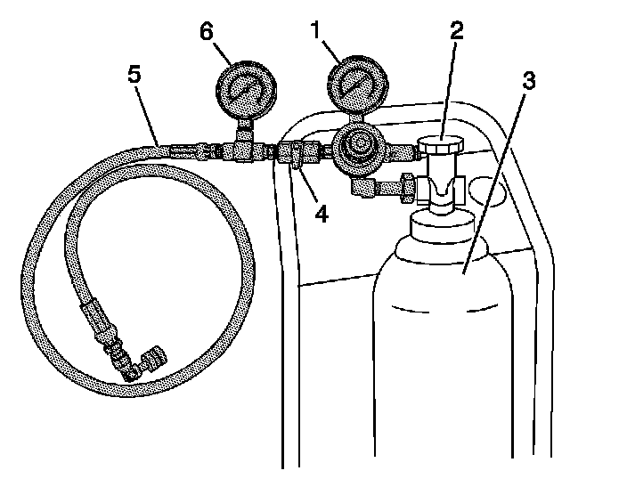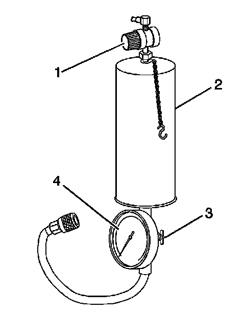 13. Obtain the J 41413 , close the valve (2) on the tank (3), and remove the regulator assembly.