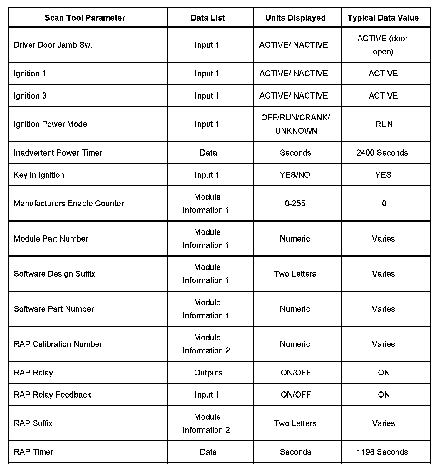 Scan Tool Data List