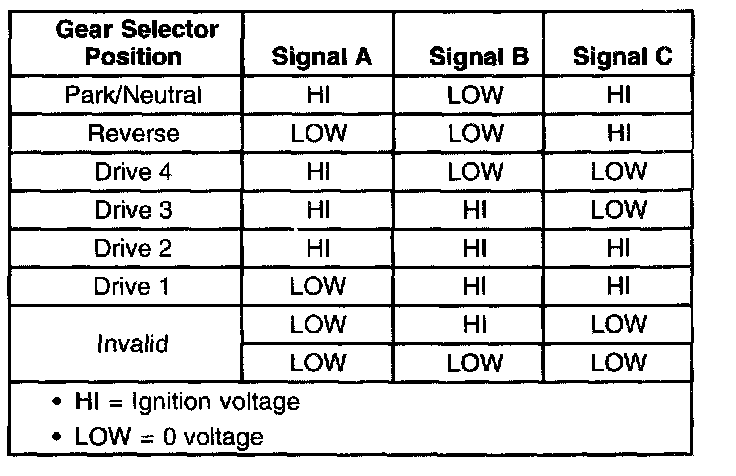 Transmission Fluid Pressure (Tfp) Manual Valve Position Switch Logic: