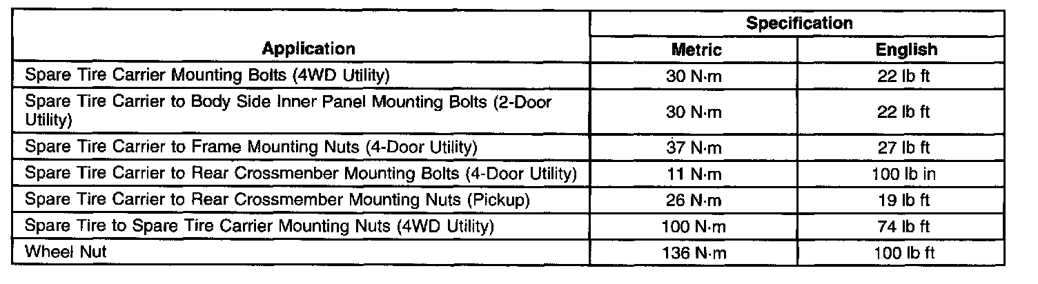 Fastener Tightening Specifications: