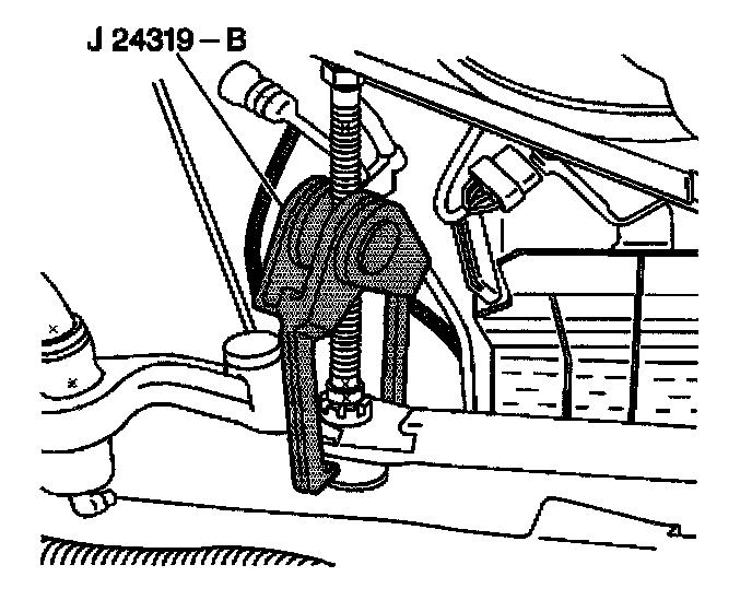 12. Disconnect the idler arm ball stud from the relay rod using J24319-B.