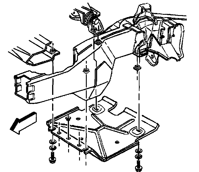 2. Install the steering shock absorber mounting bolt to the front crossmember bracket nut.