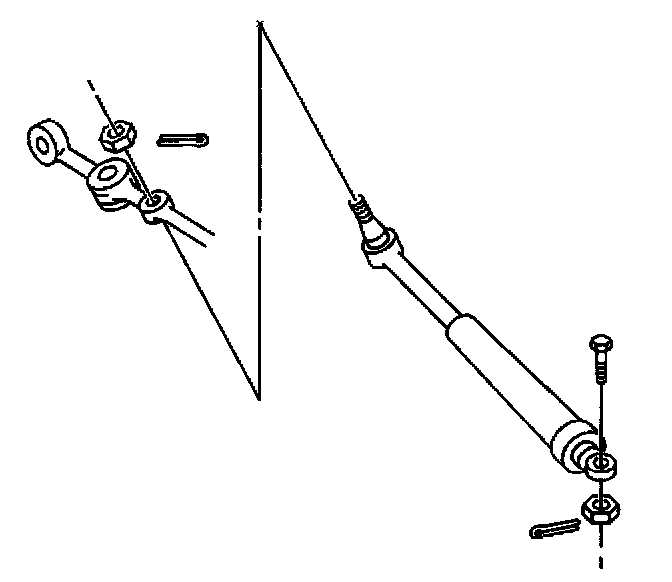 3. Install the new cotter pin to the steering shock absorber mounting bolt to the frame bracket nut. Bend out the ends of the cotter pin.