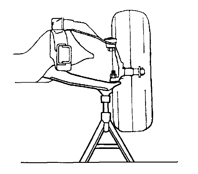 ^ Support the lower control arm with floor stands.