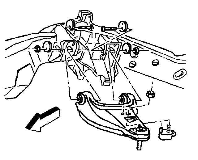 5. Install the upper control arm retaining bolts to the upper control arm.