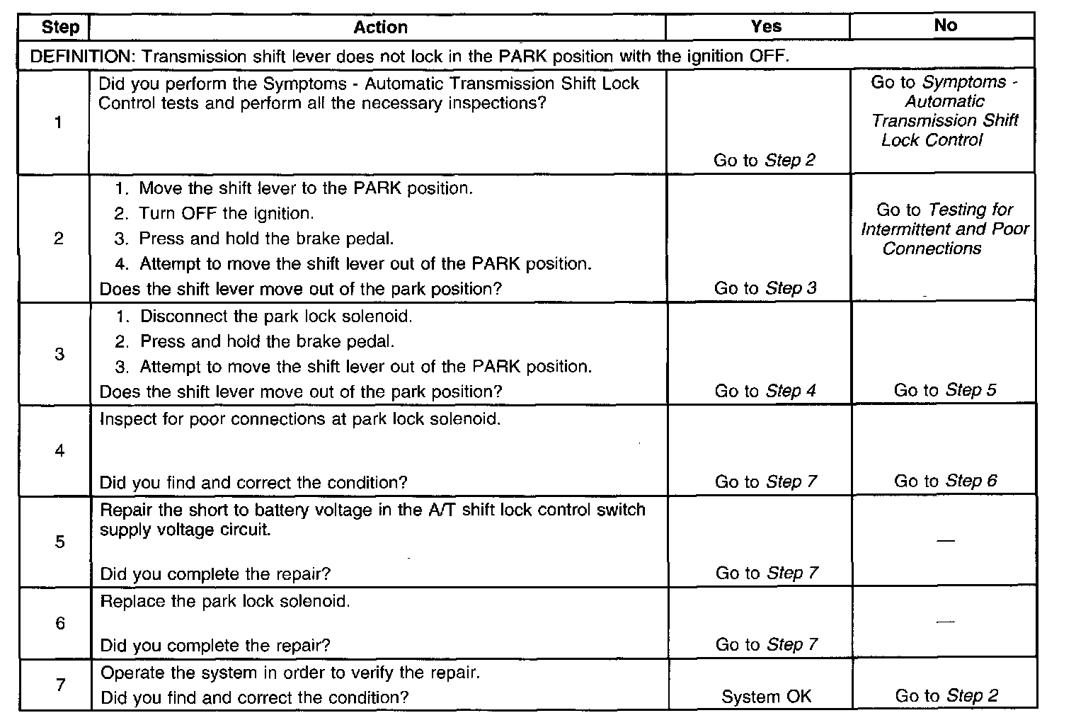 Park Lock Solenoid Inoperative