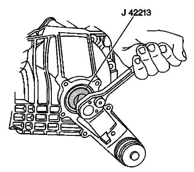 16.2. Turn the J42213 clockwise in order to remove the differential bearing adjuster and the differential case bearing cup out of the bore.