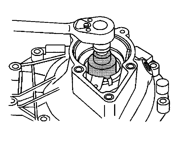 16. Remove the left differential bearing adjuster and the differential case bearing cup by doing the following: