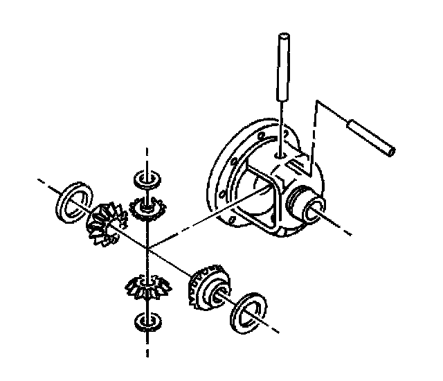 3. Install the thrust washers. Rotate the pinion gears toward the opening in order to permit the sliding in of the thrust washers.