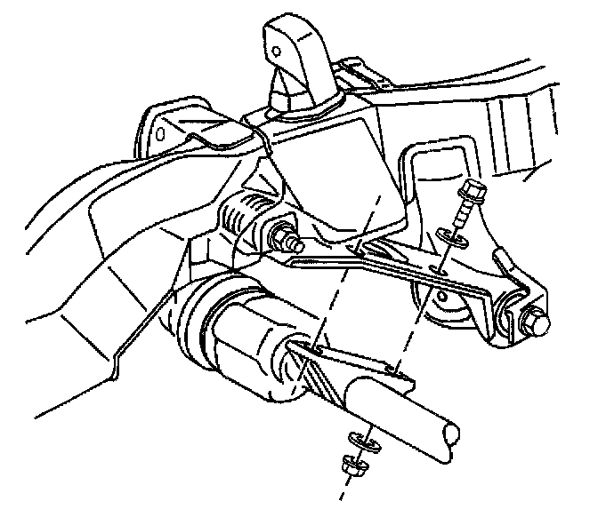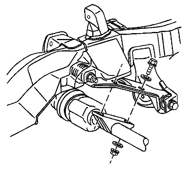 6. Install the inner axle shaft housing to the frame bracket bolts, washers, and the nuts.