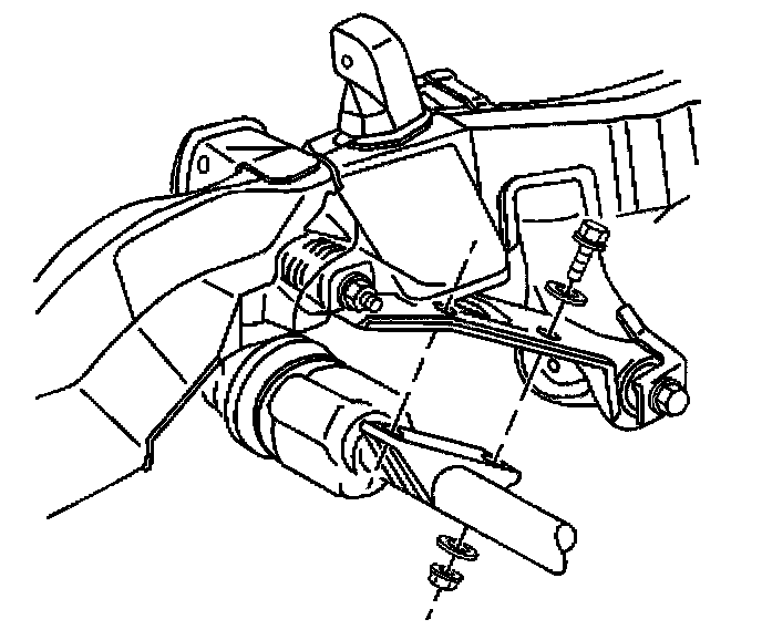 13. Install the inner axle shaft housing to the frame bracket bolts, washers, and the nuts.
