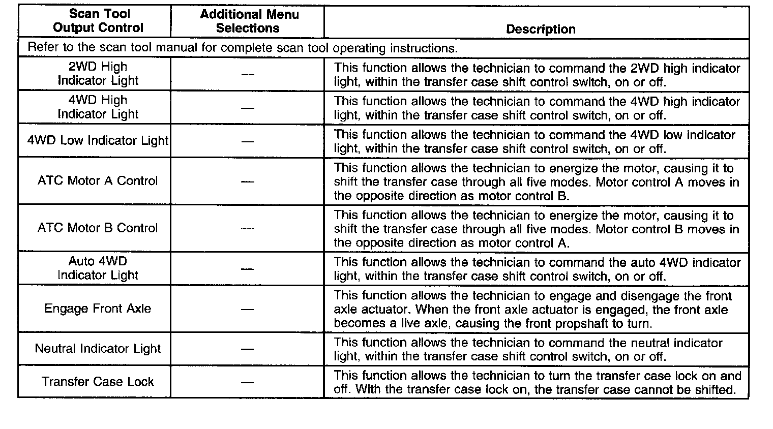 Scan Tool Output Controls