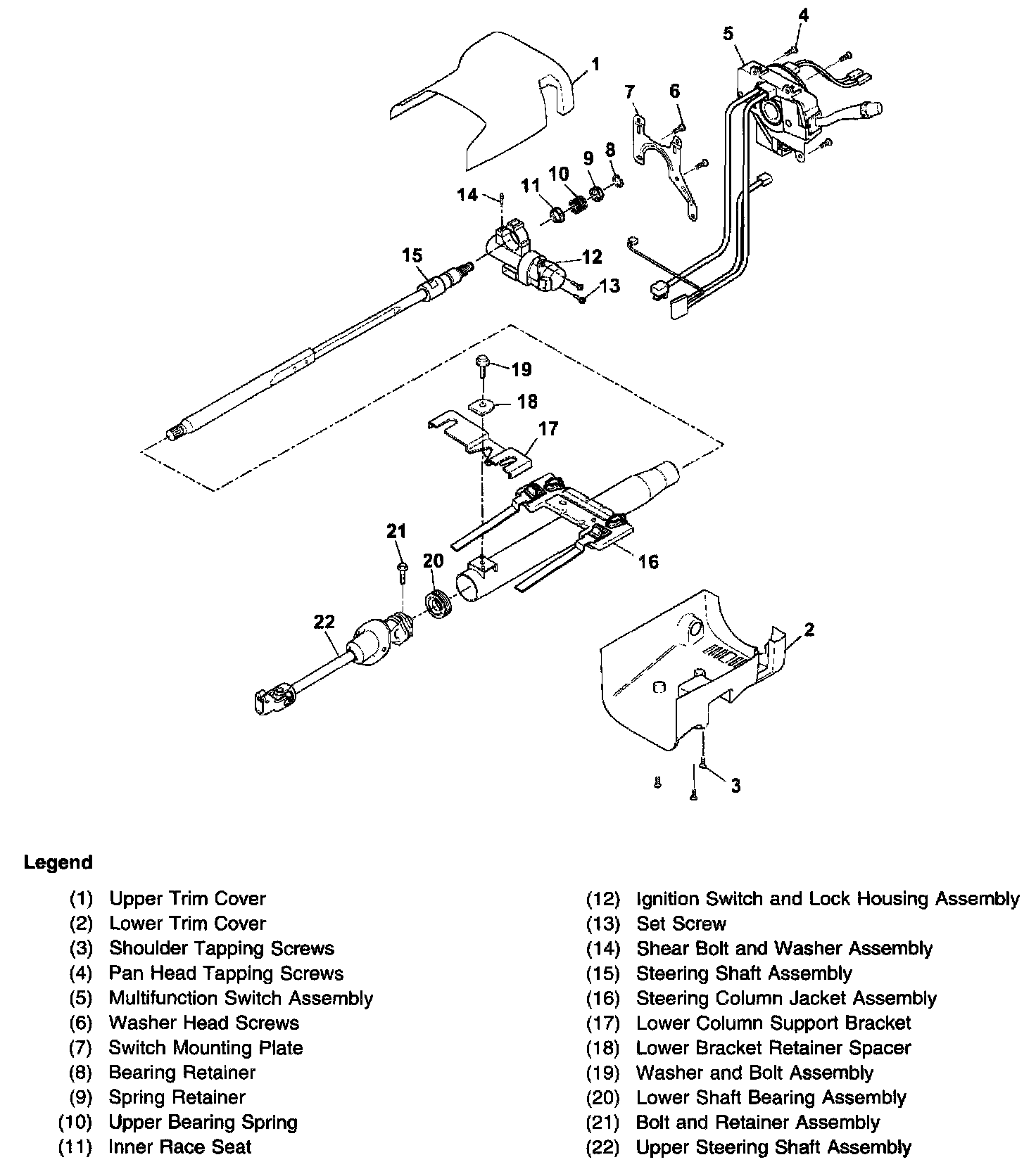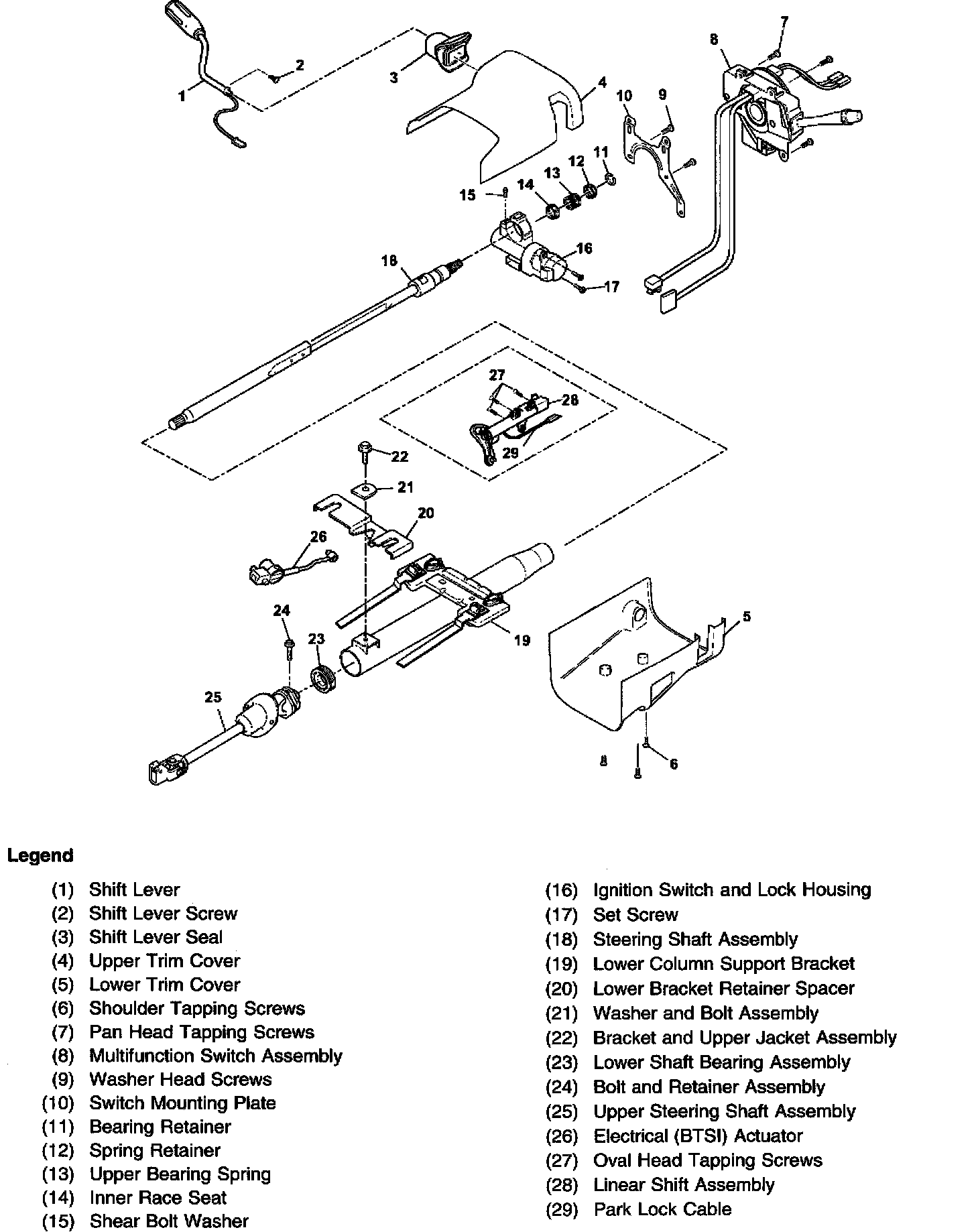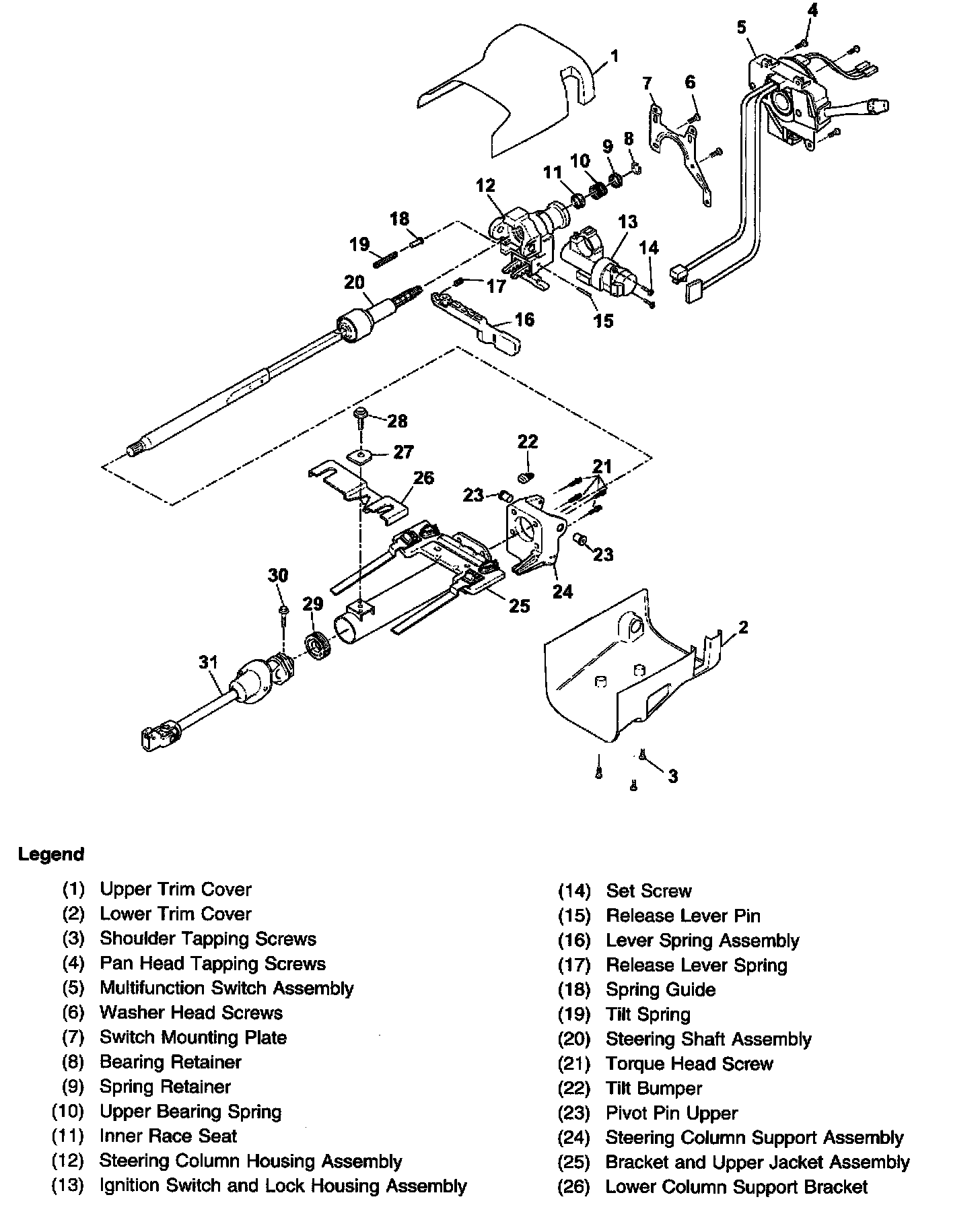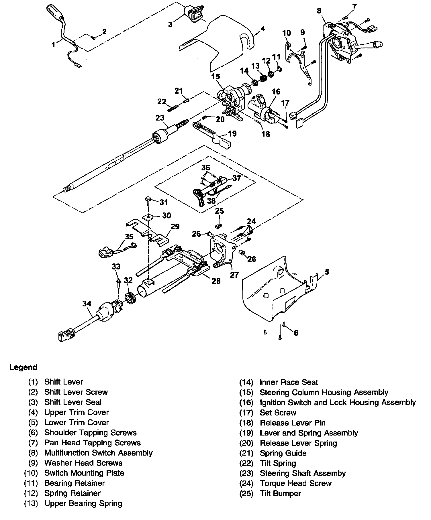 Steering Column Disassembled View (Column Shift Tilt)