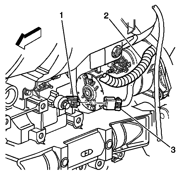 3. Disconnect the engine wiring harness electrical connector (3) from the KS (1).