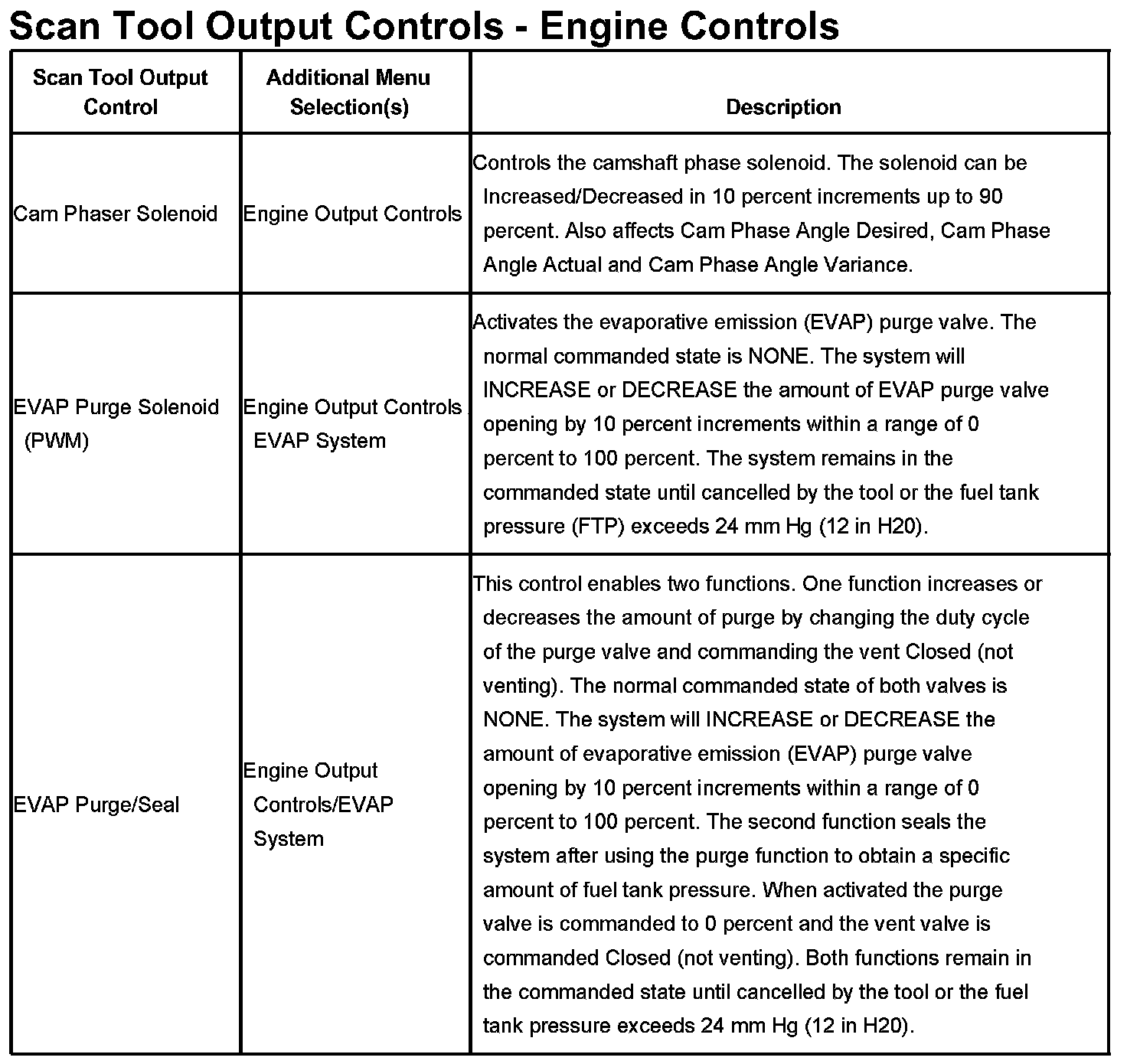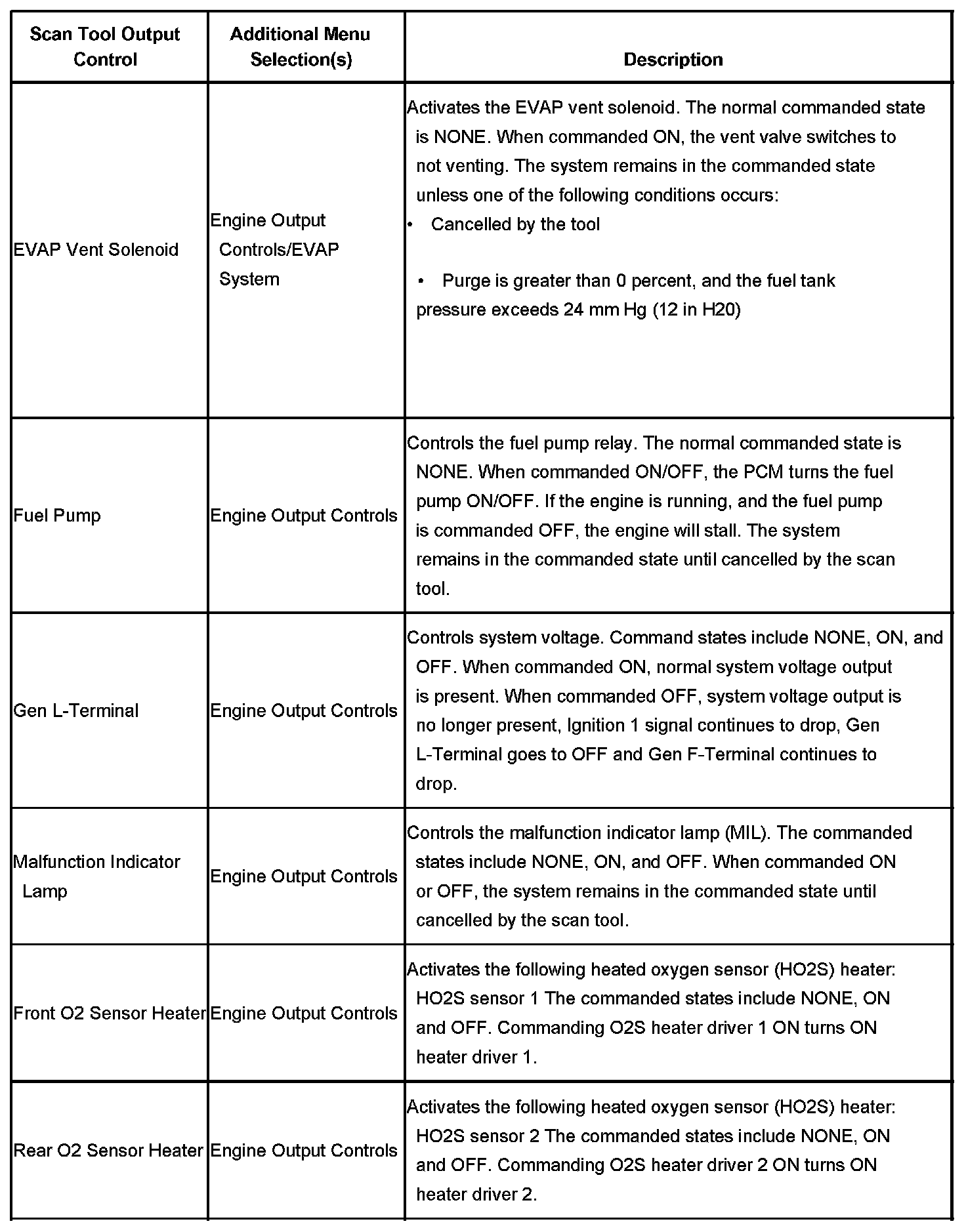 Scan Tool Output Controls