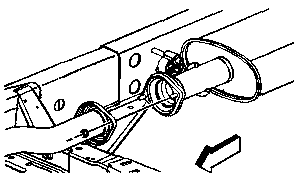 5. Position the muffler rearward, enough to allow the studs located in the front to clear the catalytic converter pipe flange.