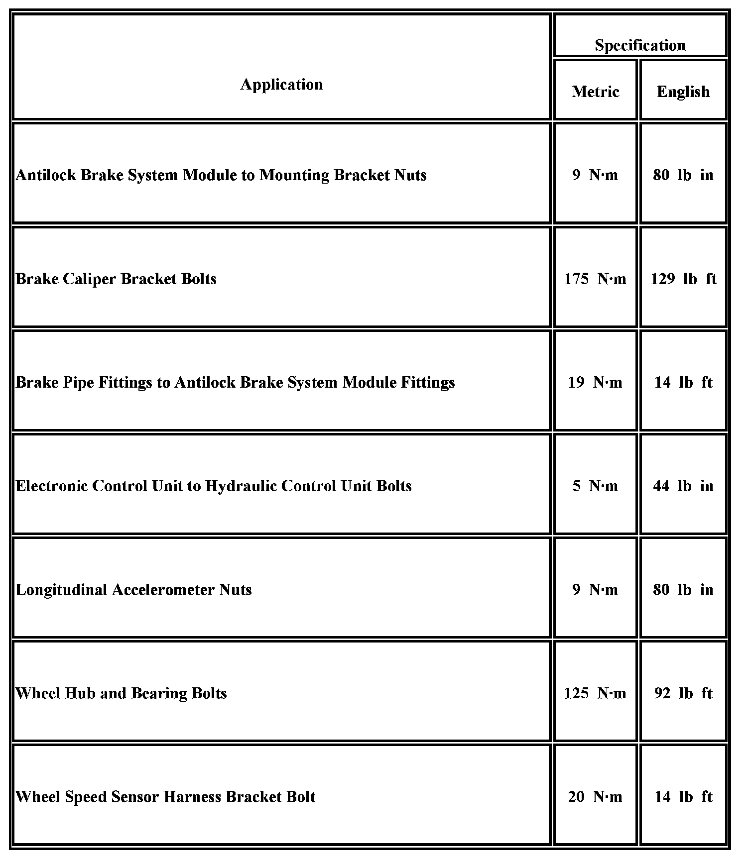 Fastener Tightening Specifications