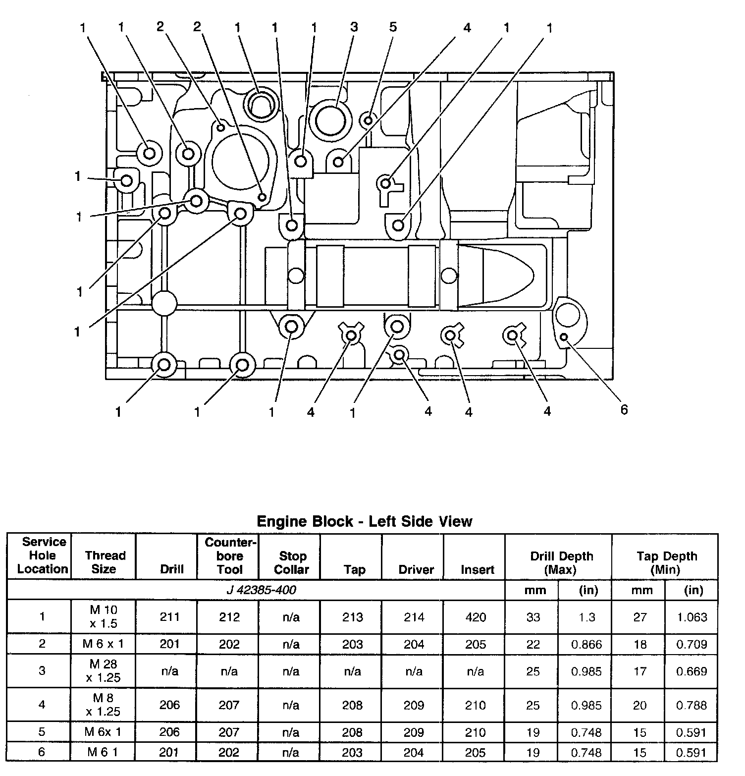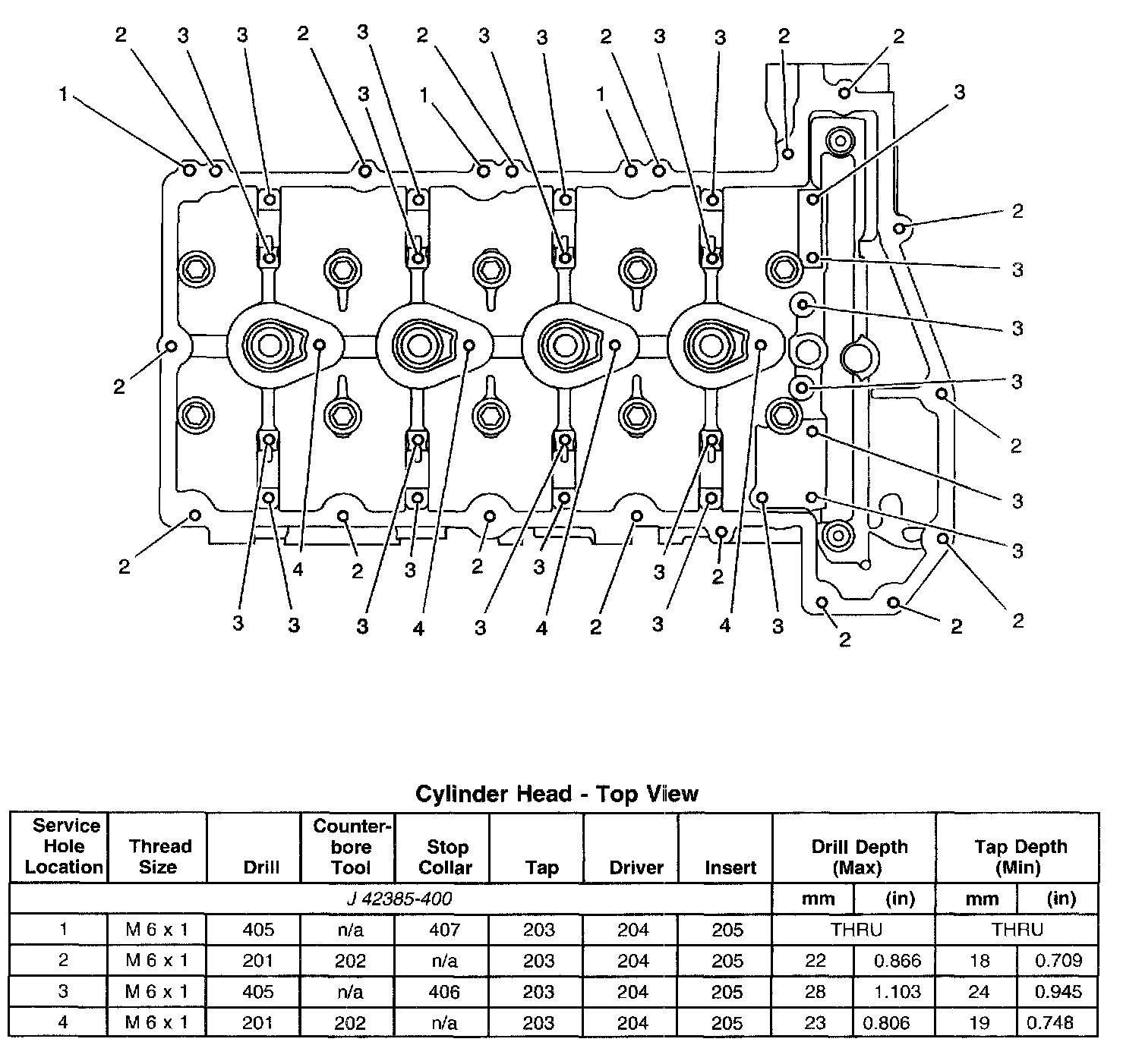 Thread Repair SpecificationsEngine Block - Top View