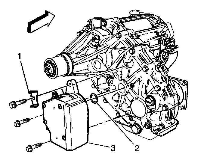 3. Position the encoder motor (3) to the transfer case, aligning the actuator shaft.