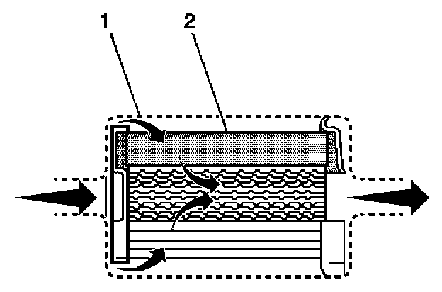 The fuel filter is located on the fuel feed pipe, between the fuel pump and the fuel injectors. The paper filter element (2) traps particles in the fuel that may damage the fuel injection system. The filter housing (1) is made to withstand maximum fuel system pressure, exposure to fuel additives, and changes in temperature.