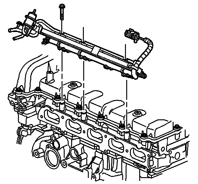 The fuel rail assembly attaches to the cylinder head. The fuel rail assembly performs the following functions: