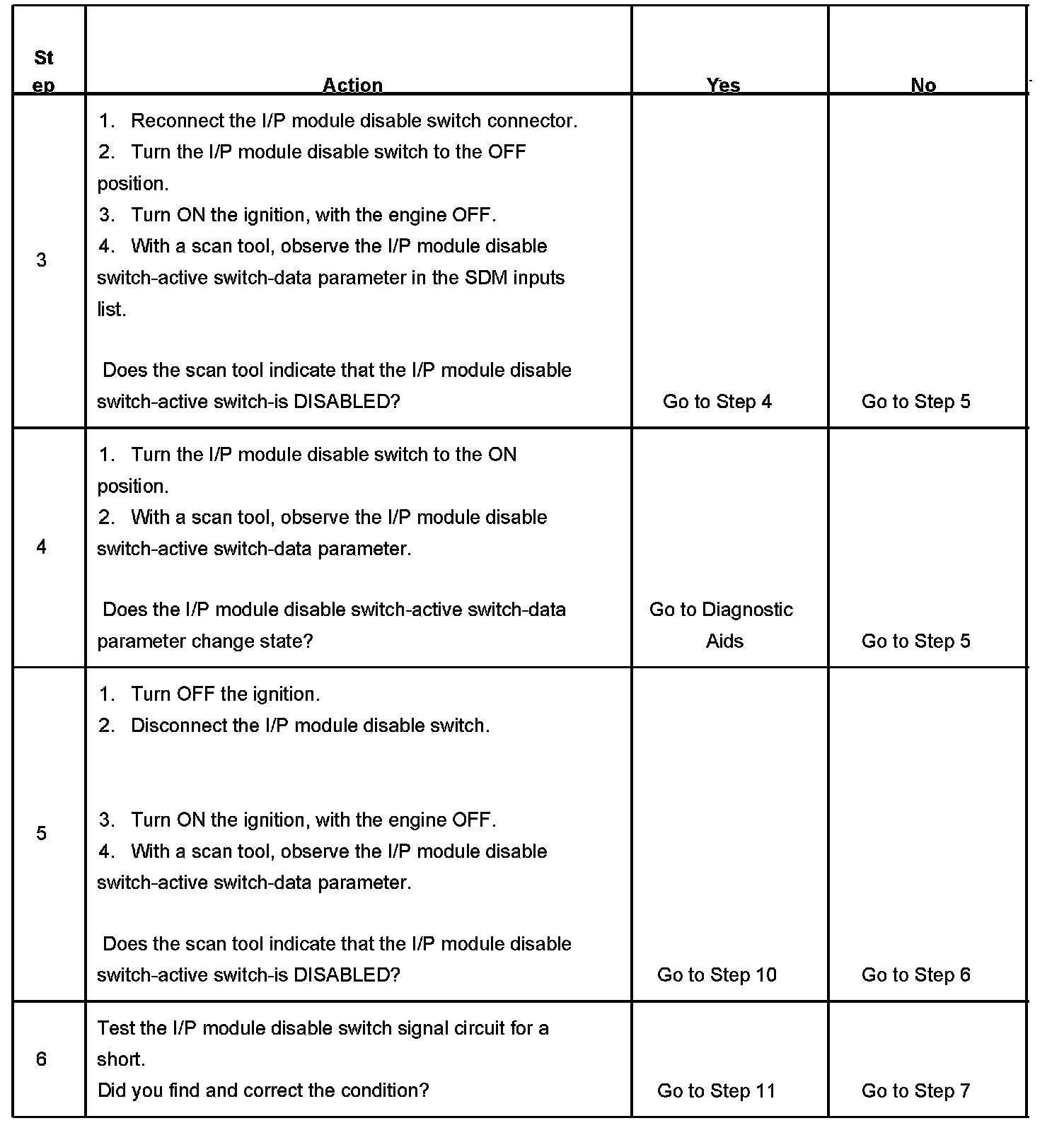 4. Tests for a malfunctioning I/P module disable switch.