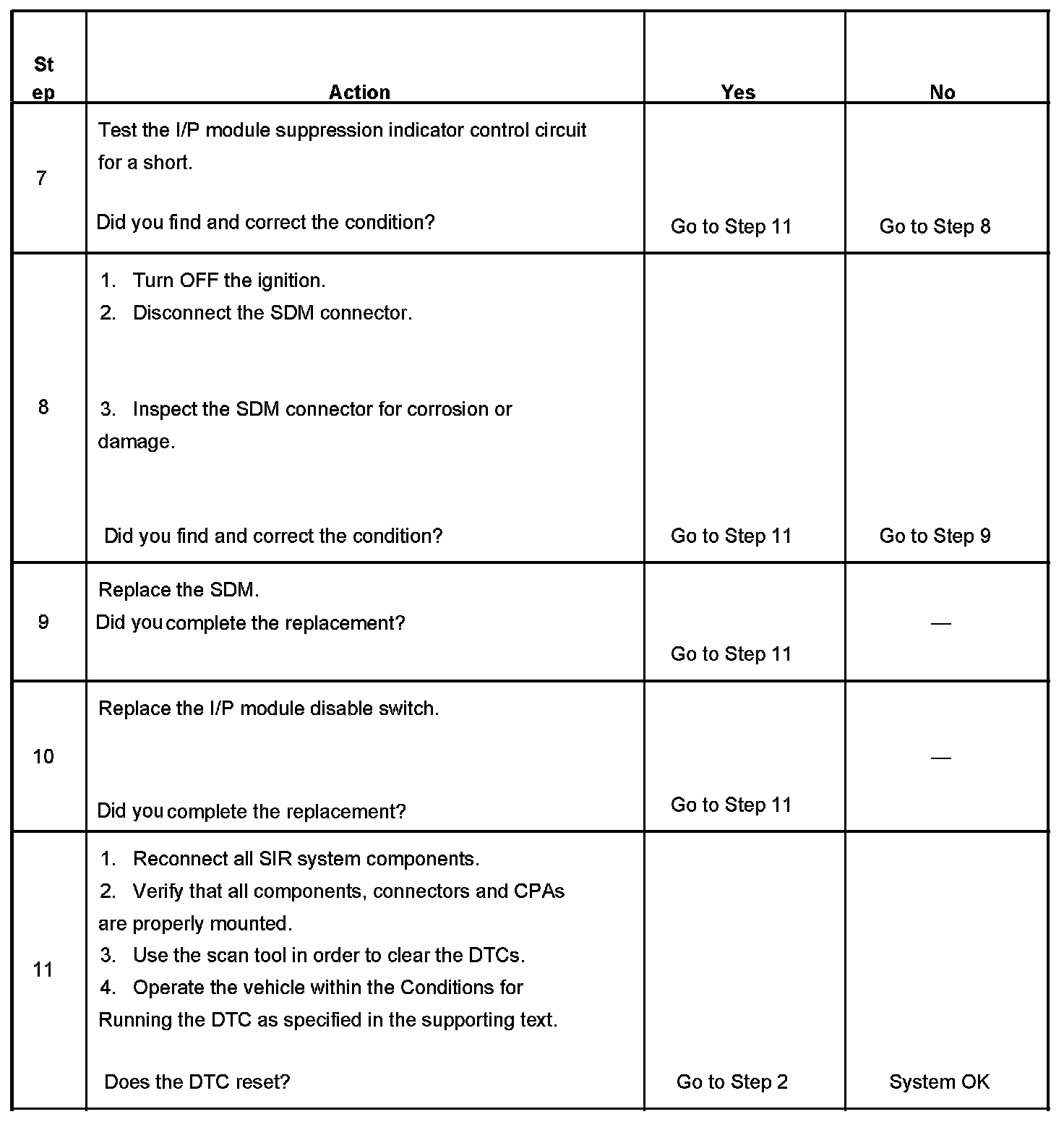 7. Tests for a short in the I/P module suppression indicator control circuit.