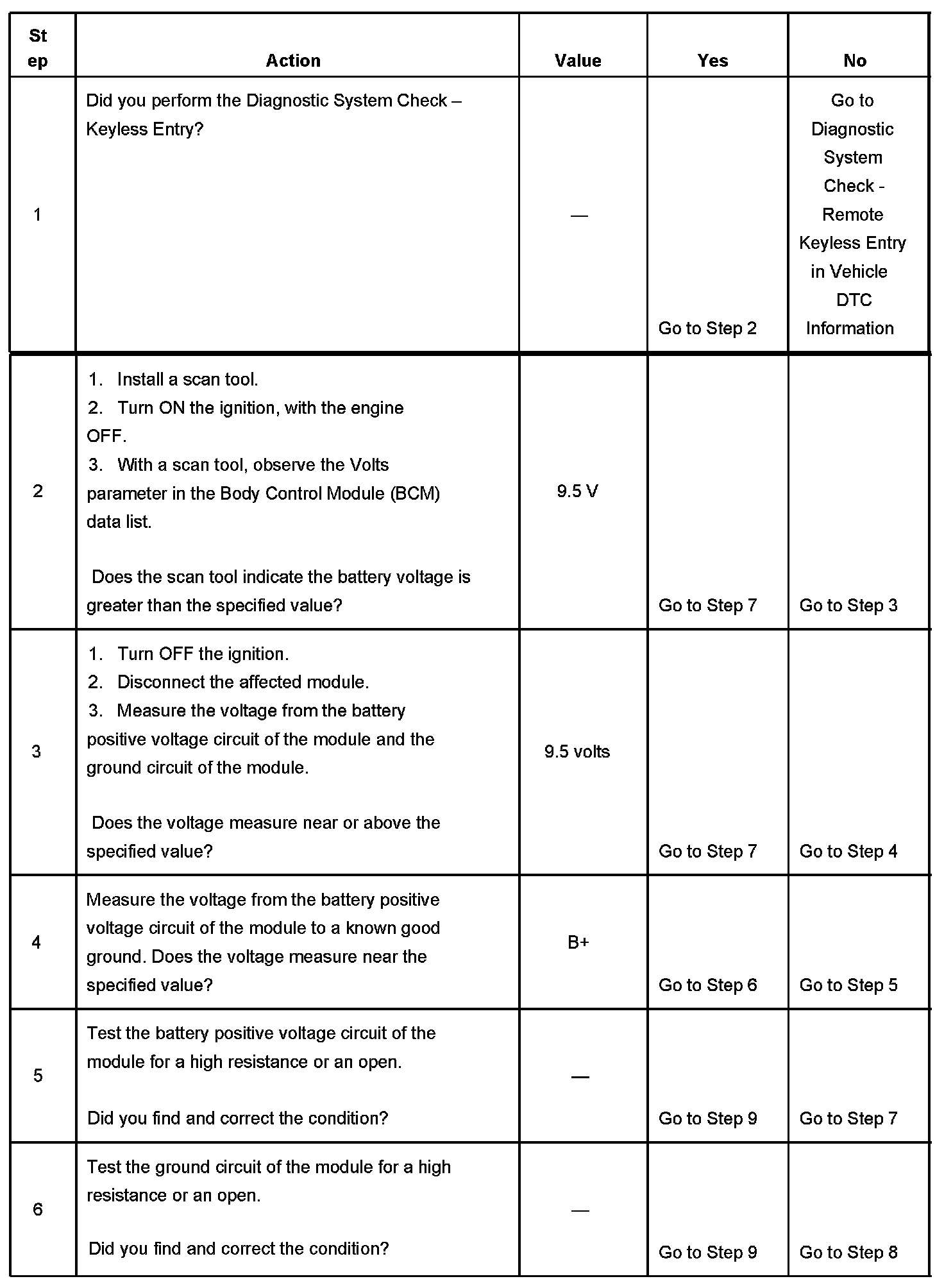 The numbers below refer to the step numbers on the diagnostic table.