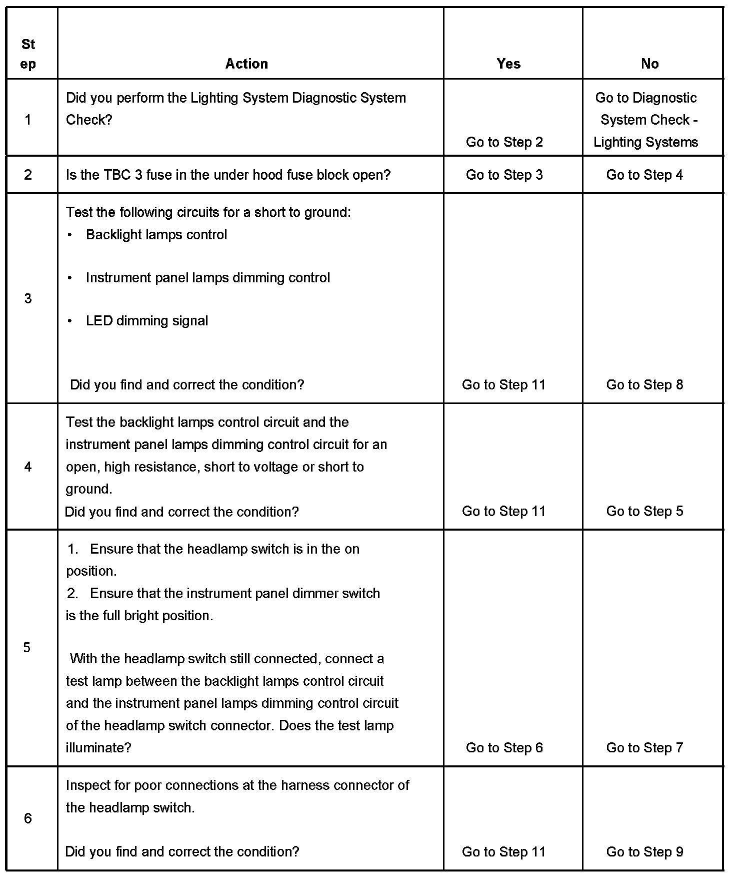 - The backlight lamps control circuit is open, shorted to ground, or shorted to voltage.