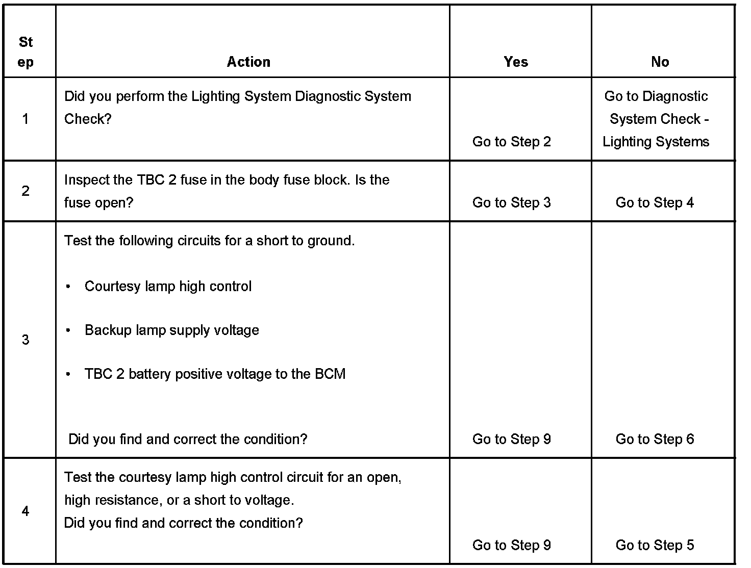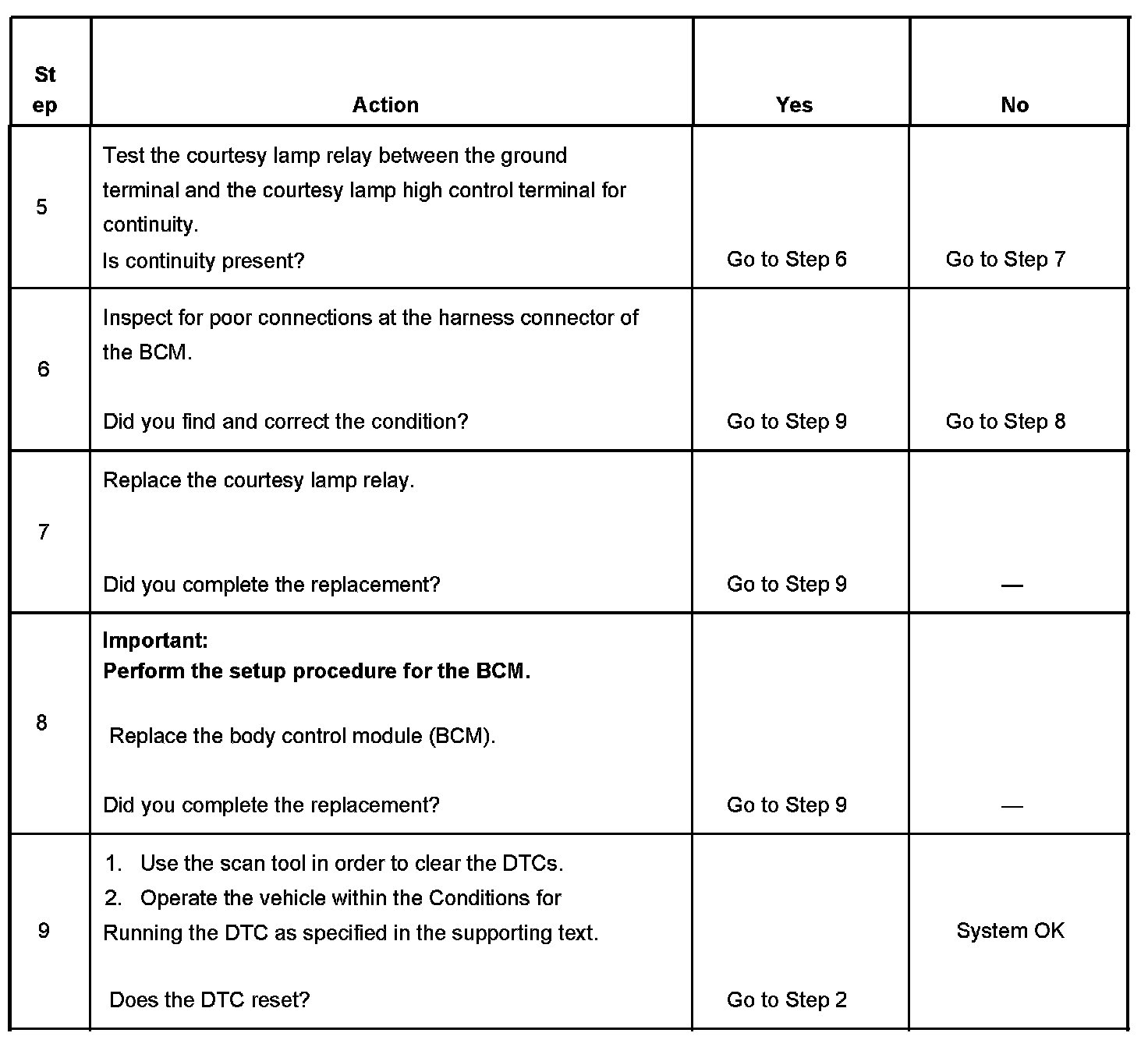 5. This step tests for an open coil in the courtesy lamp relay.