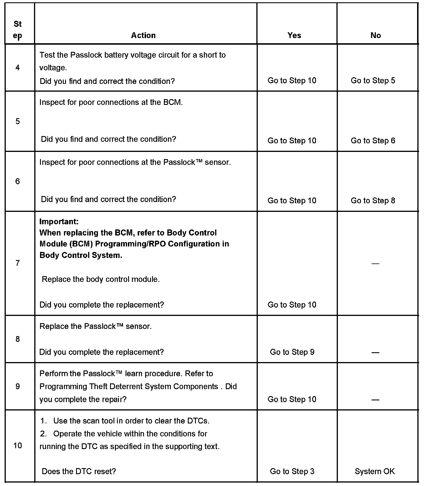- When a short to battery is no longer present on the Passlock sensor power circuit, the ignition switch must be cycled from OFF to ON before this DTC can change from a current DTC to a history DTC.