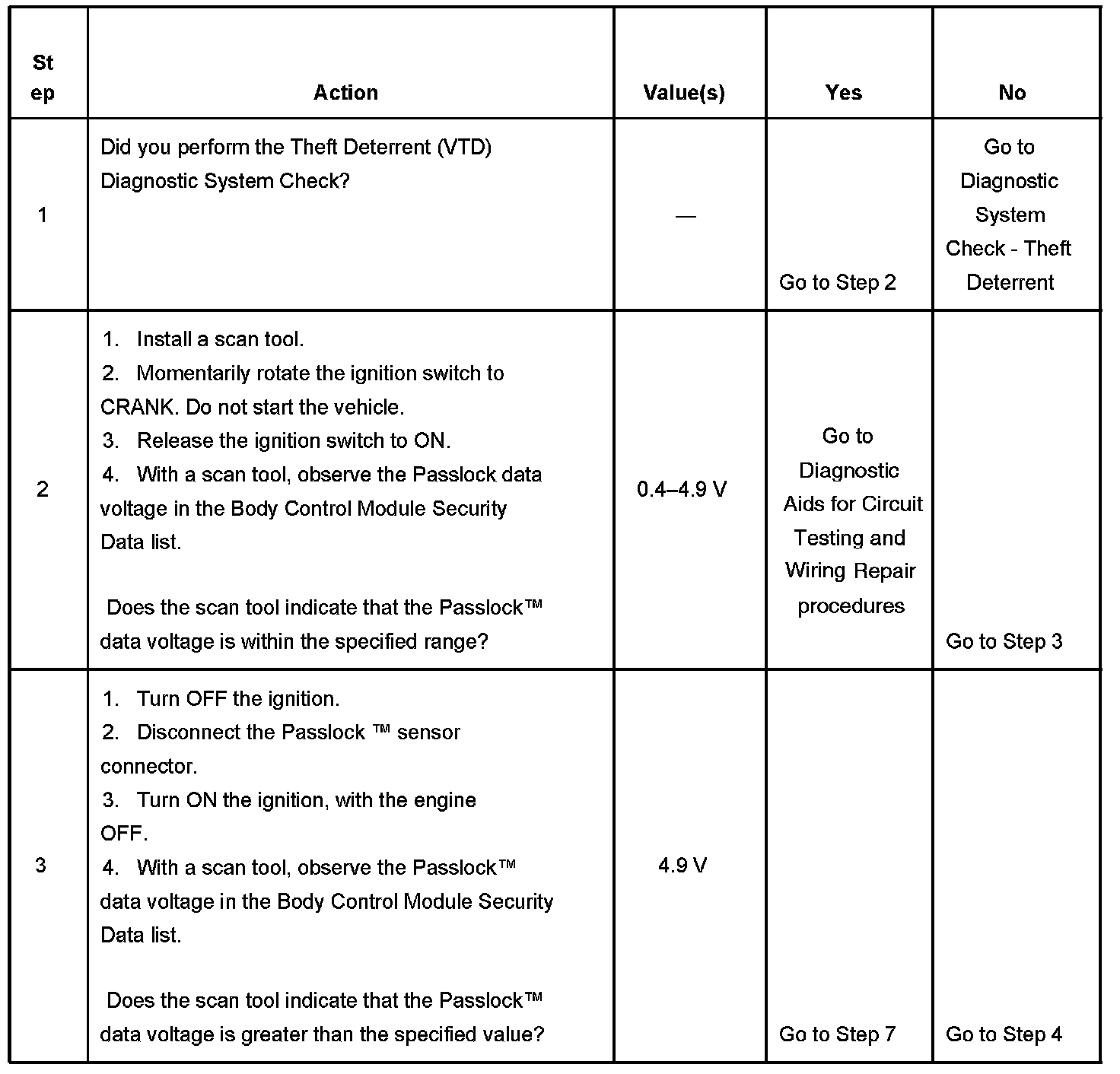 - Use a scan tool in order to inspect the Passlock(TM) data voltage and the Passlock(TM) code.