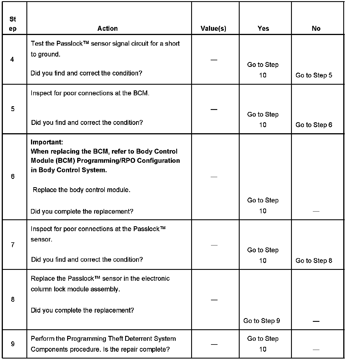 - Inspect the Passlock(TM) sensor harness for an intermittent or a short to ground.