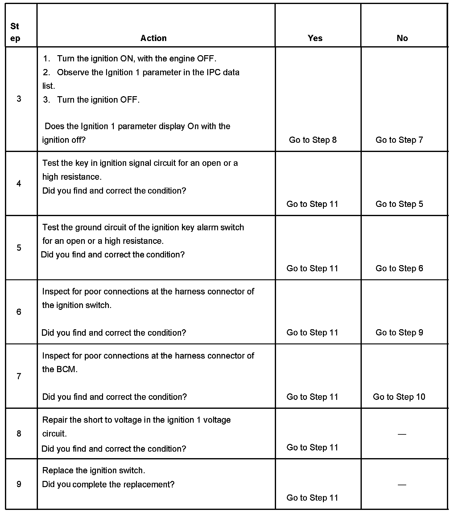 - The ignition 1 input is active and the key in ignition switch signal circuit is inactive and the signal circuit is high.