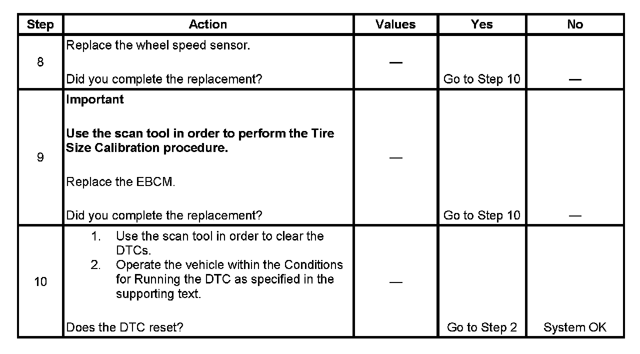 ^ The EBCM disables the ABS/TCS/VSES and may disable the DRP if more than one wheel speed sensor DTC is set.