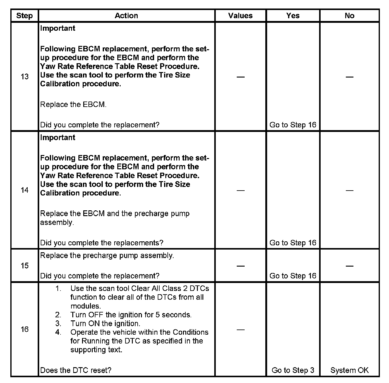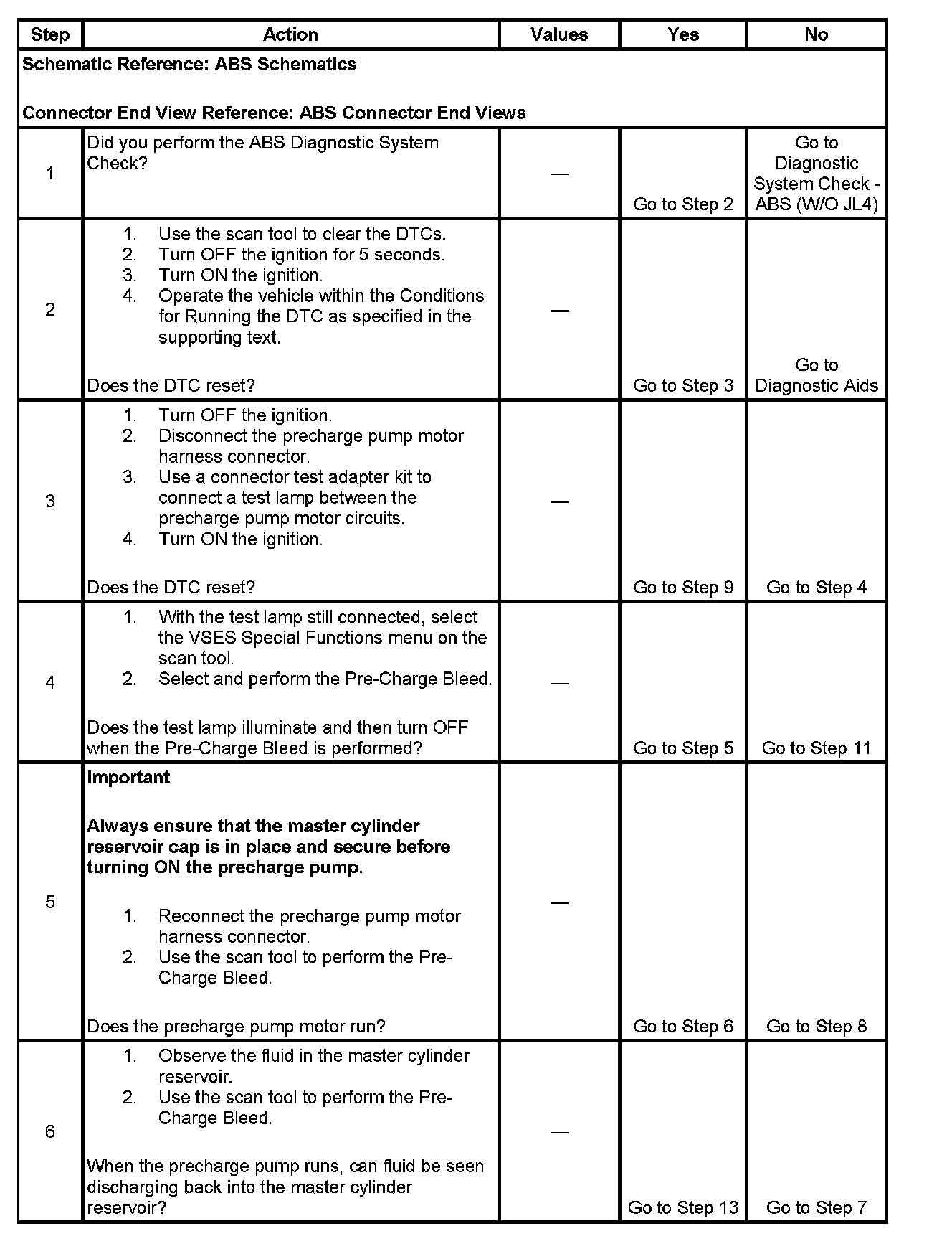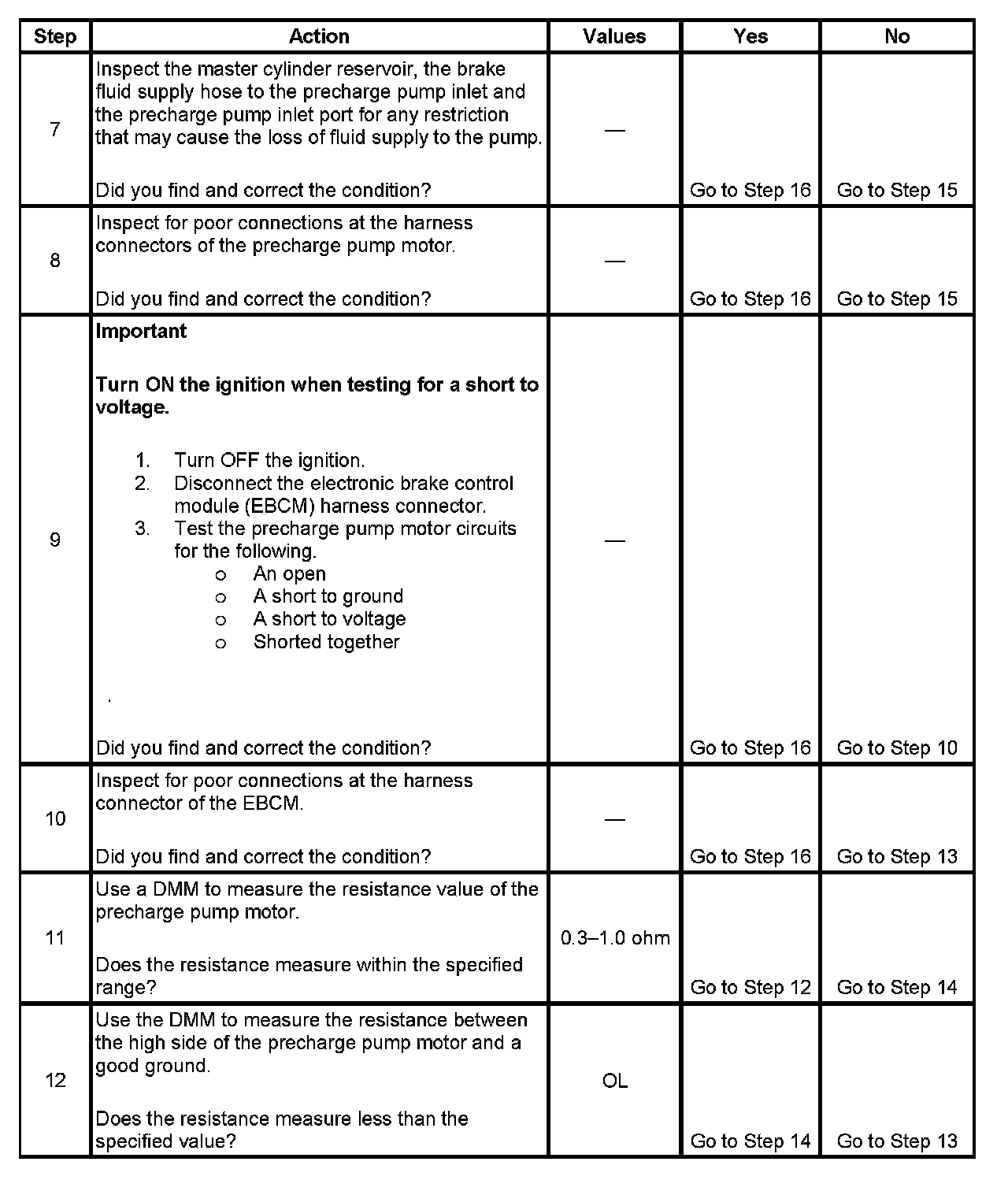 3. This step tests if the EBCM is detecting open or shorted precharge pump motor circuitry.