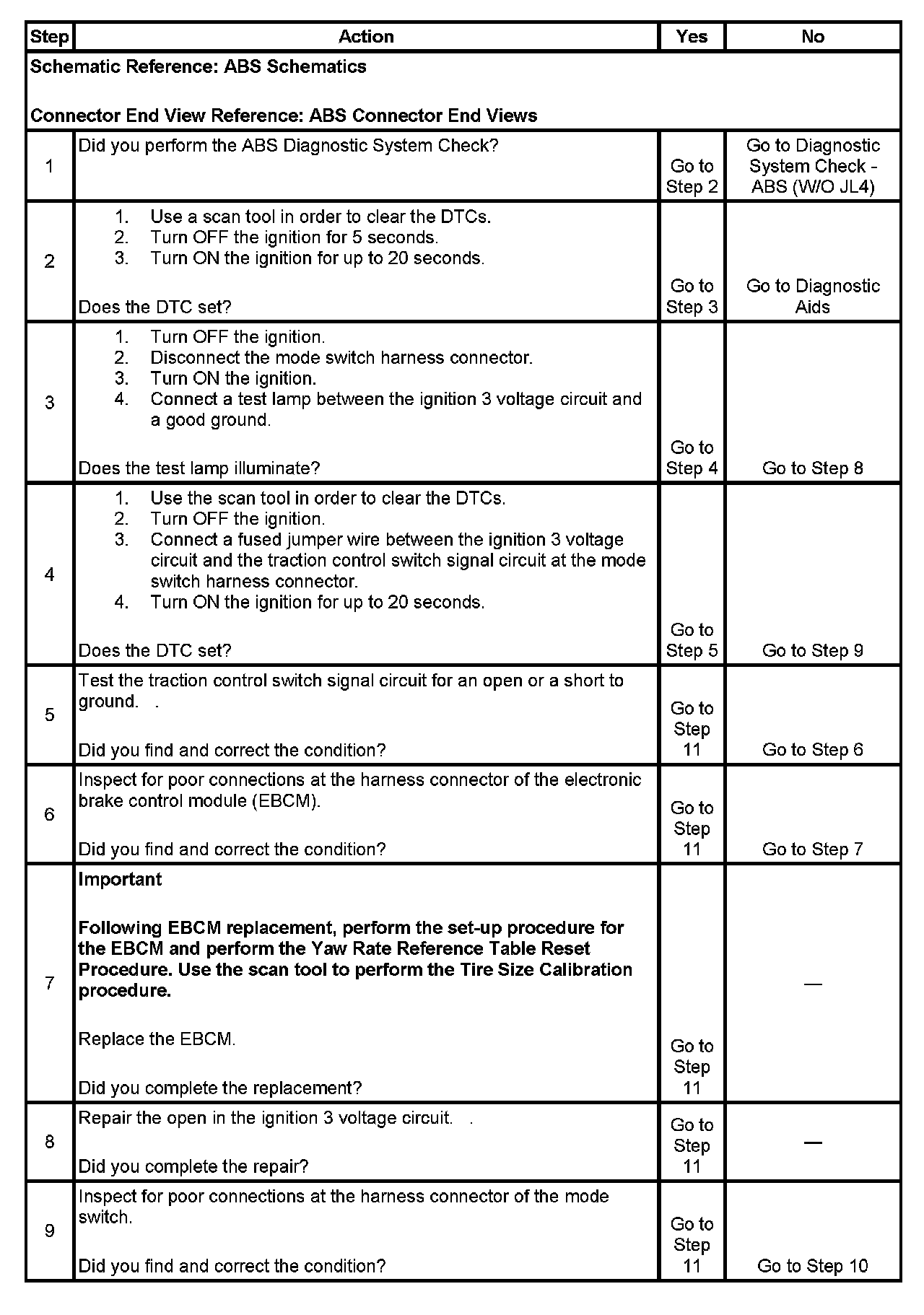 4. This step tests the traction control switch circuitry. If the fuse opens when you perform this test, the traction control switch signal circuit is shorted to ground.