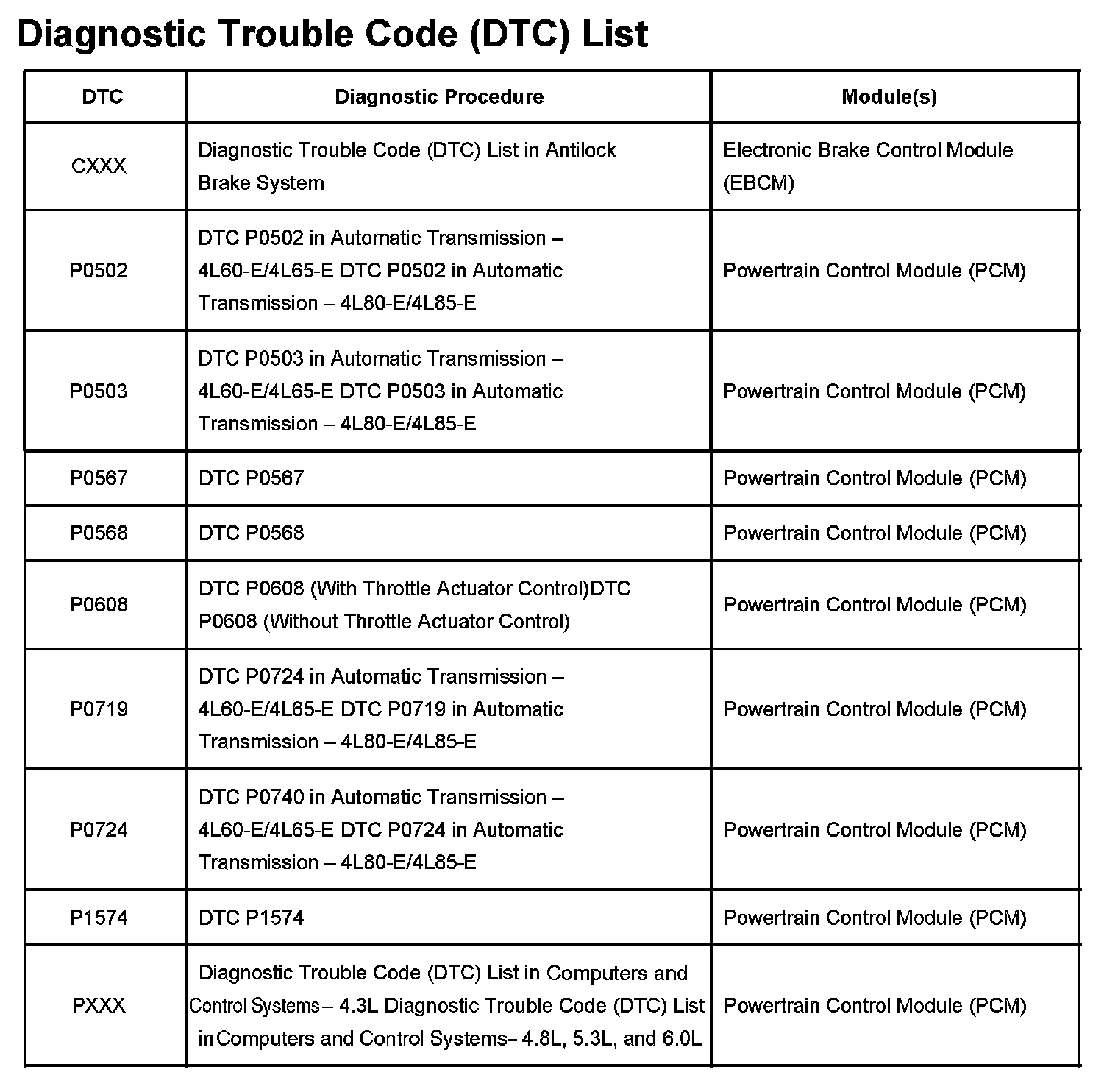 A L L Diagnostic Trouble Codes ( DTC )